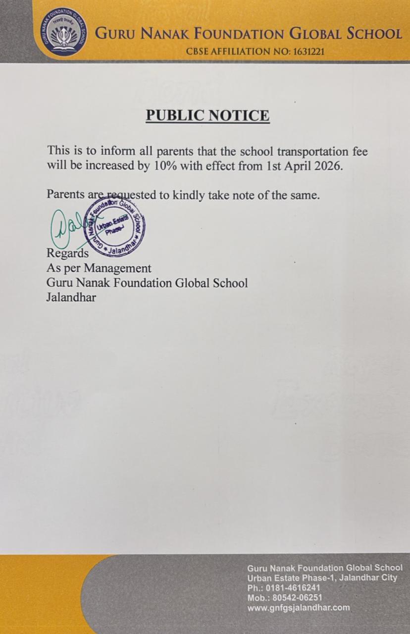 The school and parents must work hand in hand to attain our collective vision. To achieve this Guru Nanak Foundation Global School conduct Workshops to update parent and curriculum and methods used in the classroom. Create detailed student report that will be shared monthly. Send monthly newsletters with our achievements and future plans. Share research findings and films to help parents understand their child better and maintain an updated website for parents to remain connected with us 24/7